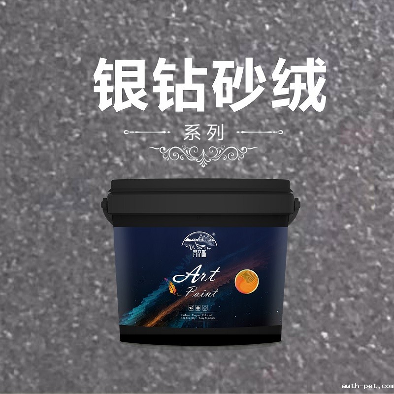 银钻砂绒采用德国先进工艺,导入纳米分离技术而成,具有细砂触感,丝绒的温暖,柔和的珠光效果,突破传统涂料单一色彩的局限性,华丽之中依稀着高贵,古典之下隐约着端庄,若隐若现的反光感和神秘感,让绒面不会显得枯燥和单调,反而增添一些轻奢与优雅,也许就是您家中所需的艺术乳胶漆。产品性能特点:1.环保健康,无毒无害;2.施工简单;3.抗污易清洗;4.净化空气,净醛除味;5.耐擦洗≥2万次;6.防霉防潮;7.丝绒质感;8.钻石光泽。